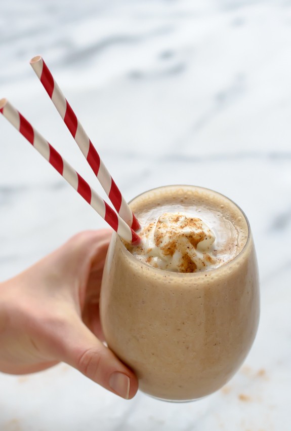 Packed with protein! This classic, heavy holiday beverage turns into a healthy smoothie with the help of almond milk and banana. Thanks to the ground nutmeg and cloves, it tastes like the real deal.